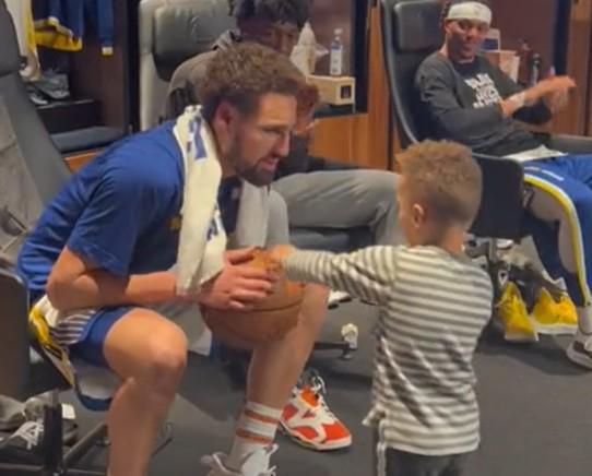 库里同儿子卡农观看独行侠比赛,卡农:汤普森上场了你咋在这